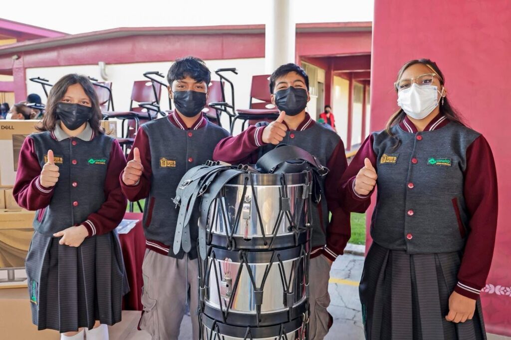 Al iniciar el segundo semestre del ciclo escolar 2025-2026, se entregaron explanadas y canchas, así como mobiliario escolar, más de 400 equipos de cómputo, instrumentos para banda de guerra y equipamiento deportivo a estas instituciones, acciones que mejoran las condiciones de aprendizaje y dignifican los espacios educativos.