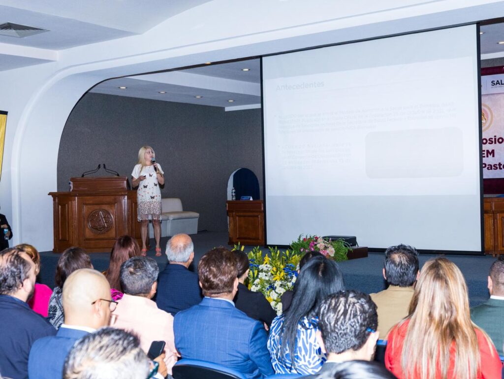Como parte del Simposio, la Secretaria del ramo, Macarena Montoya Olvera dictó la conferencia magistral “Modelo de Salud en el Estado de México”, destacando el trabajo del Gobierno de la Maestra Delfina Gómez Álvarez para garantizar el acceso a servicios de calidad y enfrentar los retos que plantea contar con nueve millones de mexiquenses sin seguridad social.