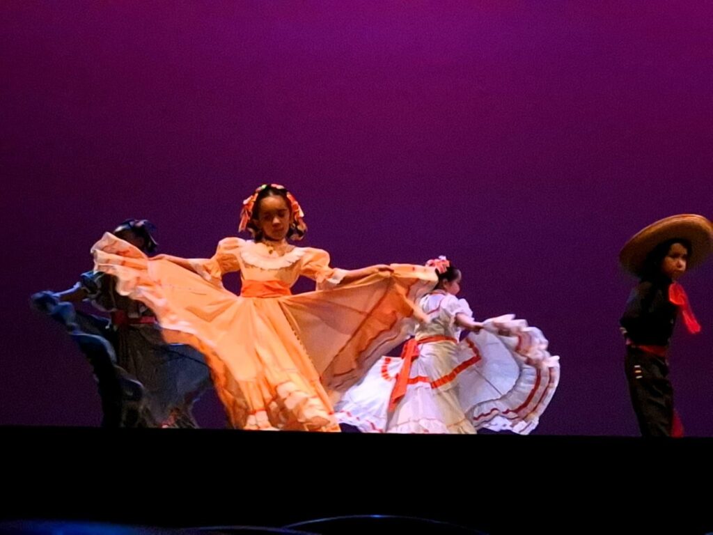 El espectáculo está compuesto de nueve escenas con diferentes coreografías tradicionales mexicanas. Por ejemplo, algunas danzas de quetzales, jarabe tapatío, danza de moros, jarabe de colima, entre otras.