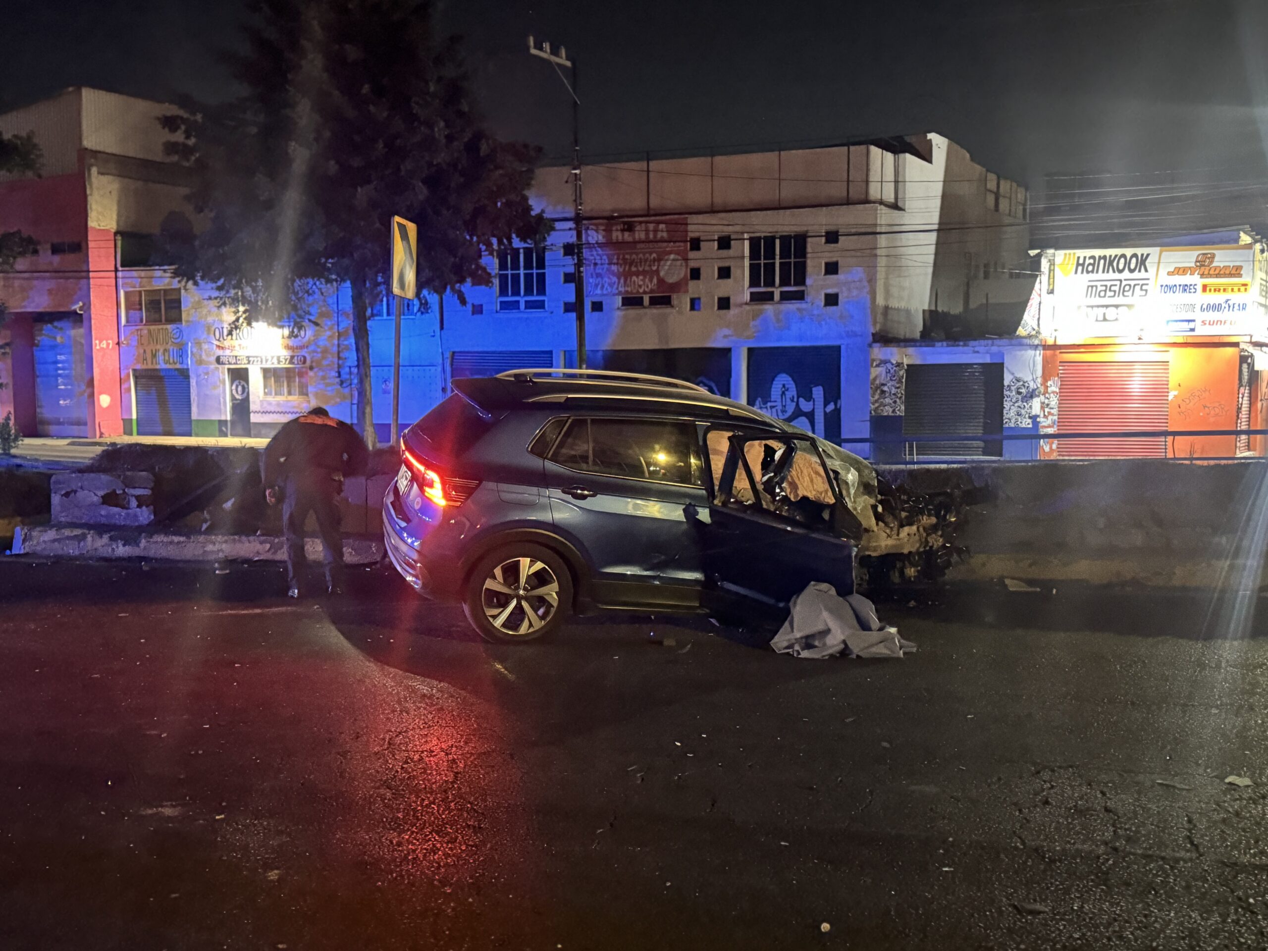 El hombre de entre 30 a 35 años, viajaba en una Volkswagen Tiguan color azul que acabó destrozada de la parte delantera, incluso un neumático se le desprendió por el impacto en los carriles centrales de Paseo Tollocan.