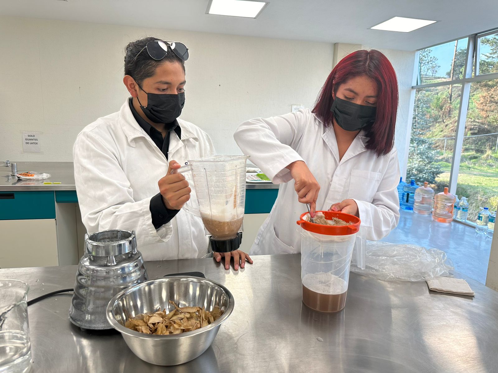 Durante una entrevista en el Laboratorio de Microbiología y Biología Molecular de la UTVT-Capulhuac, donde Castro Aguilar y otras cuatro compañeras desarrollan este proyecto, se destacó el proceso de extracción de almidones de la cáscara de papa.