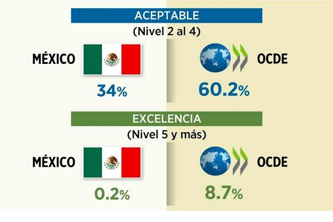 En el reporte general sobre los resultados de PISA 2022, elaborado por la Organización para la Cooperación y el Desarrollo Económicos (OCDE), los estudiantes mexicanos en Matemáticas y ciencias fueron inferiores en comparación con 2018 y aproximadamente los mismos en Lectura.