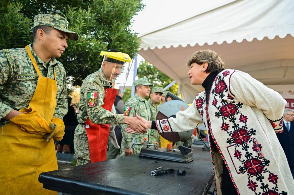 “En este rubro ocupamos el primer lugar en el intercambio y destrucción de 420 armas cortas y de 218 granadas, con lo que se demuestra el compromiso de la ciudadanía mexiquense con una entidad más segura”, señaló la Gobernadora Delfina Gómez Álvarez en redes sociales.