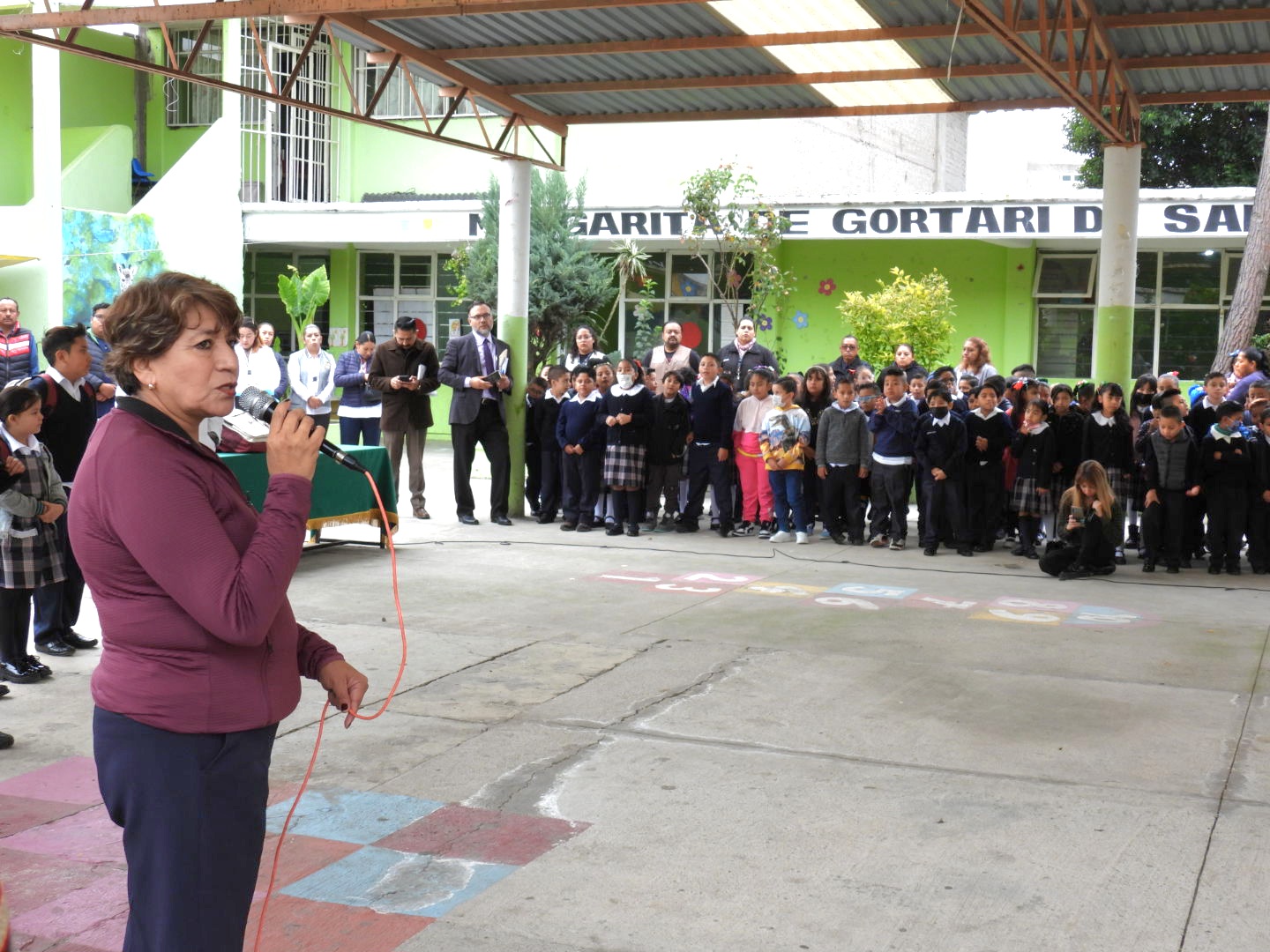 “Gracias a los maestros, padres de familia y los pequeños que también hicieron faena, lo que regularmente hacemos al inicio del ciclo escolar, los maestros somos muy dados a limpiar nuestras áreas de trabajo, a quedarnos incluso más tiempo de lo normal, porque es una vocación que tenemos los maestros de servir”, manifestó la Gobernadora Delfina Gómez Álvarez.