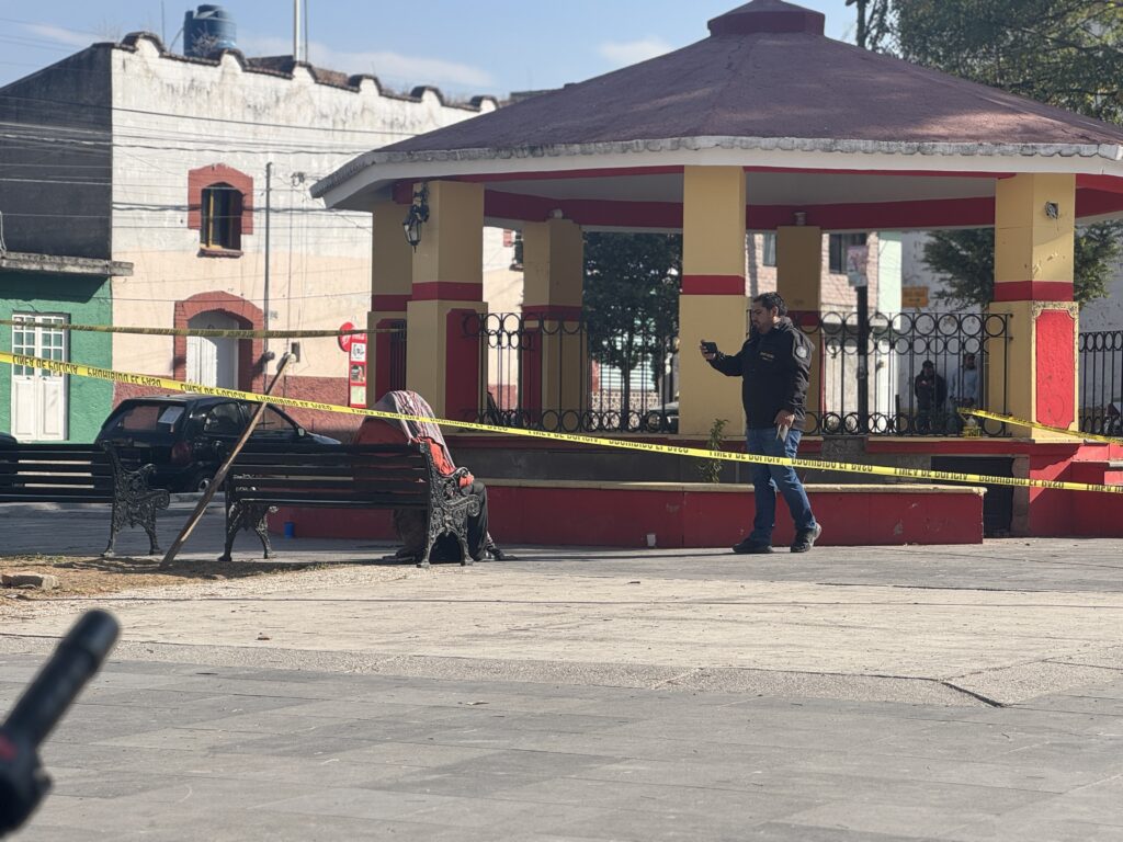 Adán se quedó muerto en una banca frente a un kiosko, la gente pensaba que se había quedado dormido en la delegación de San Antonio Buenavista en Toluca, familiares acudieron para identificar a la víctima en el sitio.