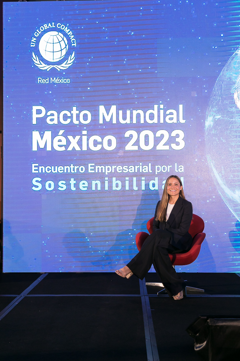 La especialista participó en el Encuentro Empresarial por la Sostenibilidad del Pacto Mundial México 2023, organizado por la Organización de las Naciones Unidas, el 29 y 30 de agosto en la Ciudad de México por el trabajo de FEMSA para lograr la inclusión laboral de personas en situación de movilidad en el país.