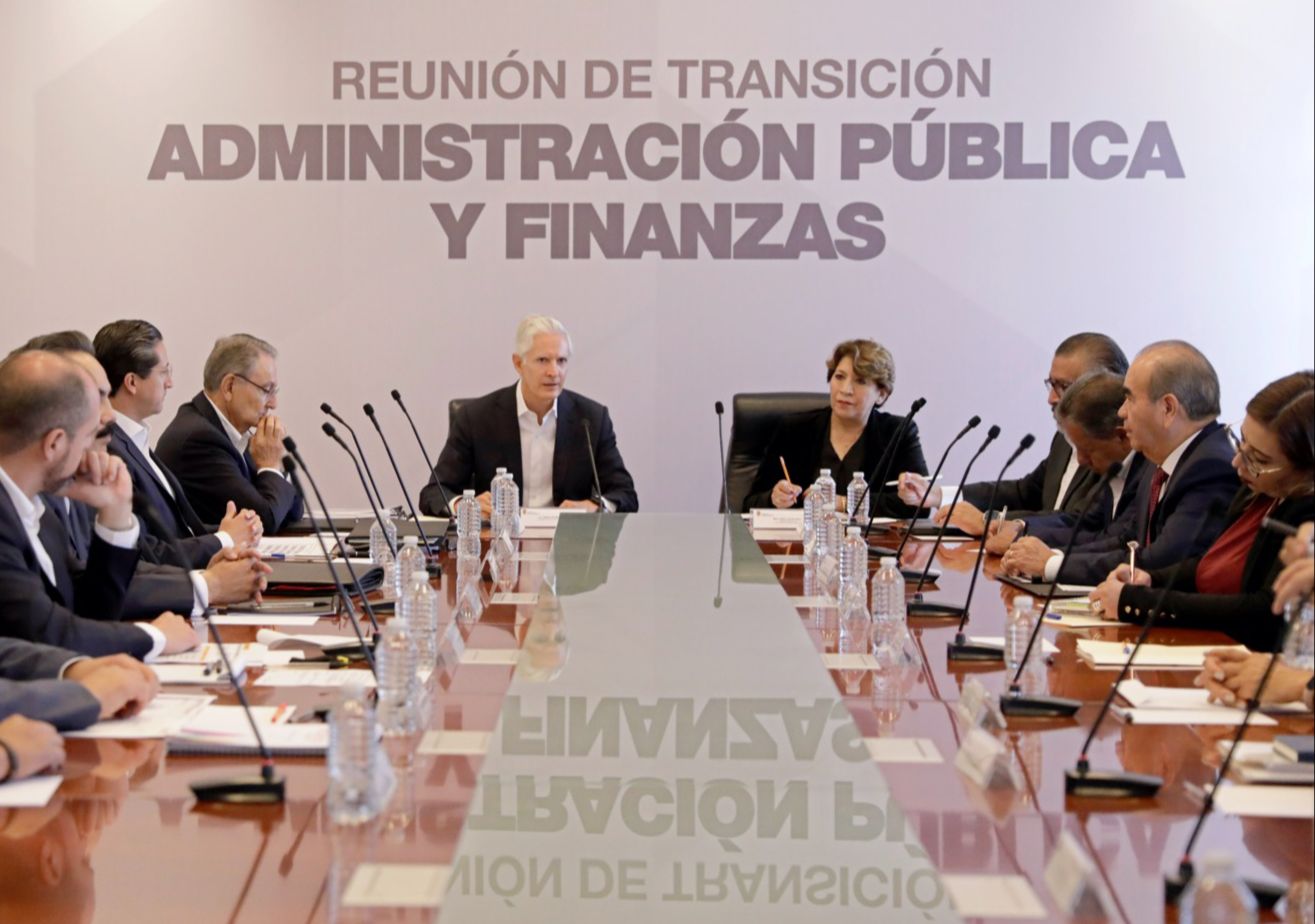 En la reunión celebrada en el salón Guadalupe Victoria del Palacio de Gobierno de Toluca, los equipos de transición de la gobernadora electa,   Delfina Gómez y del gobernador Alfredo del Mazo Maza, revisaron  la estructura de Gobierno y abordaron el Proceso de Entrega-Recepción.