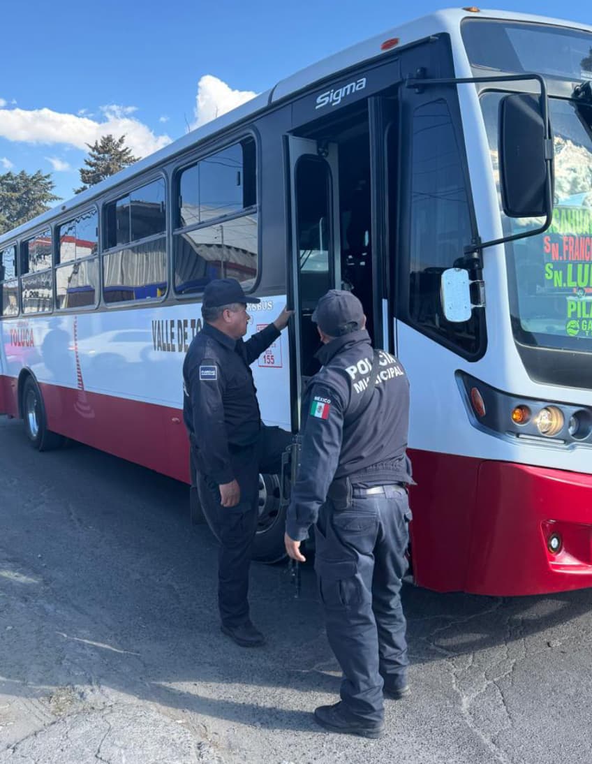 El pasado fin de semana implementaron diversos operativos como el denominado “Transporte Seguro” en San Francisco Tlalcilalcalpan y en Colinas del Sol, donde se inspeccionaron autobuses de transporte público, taxis, vehículos particulares y motocicletas, revisando también a más de 500 personas.
