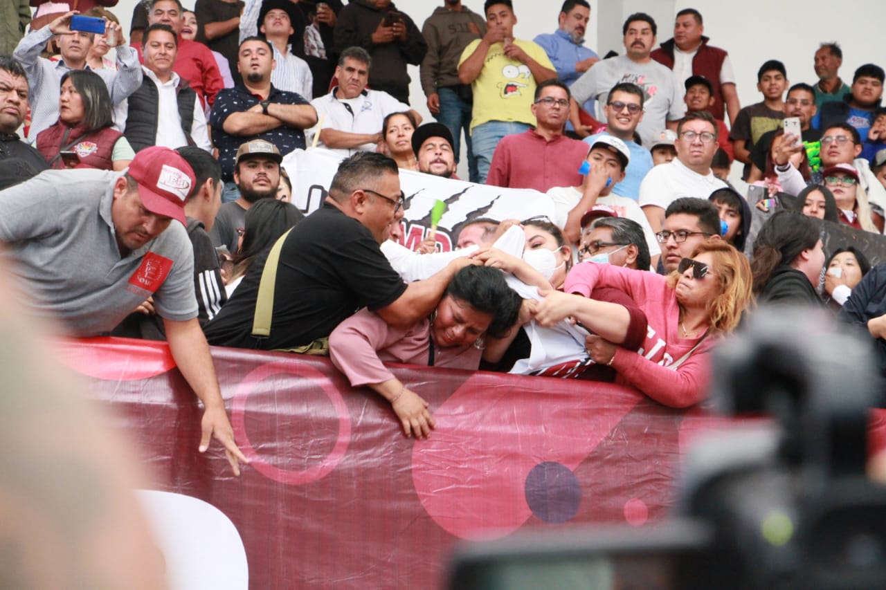 Al final del evento, cuando acababa de salir la Gobernadora, en la zona de gradas se desató un enfrentamiento provocado por grupos de choques de Vilchis, con vecinos que respaldan al uno de los líderes de izquierda Octavio Martínez.