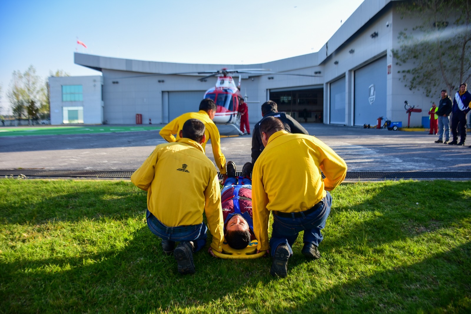 También se impartió el curso Evacuación Aeromédica, donde se enseñó a las brigadas la forma de otorgar atención inicial en el lugar para posteriormente ingresar al paciente a una aeronave y comenzar su traslado a un hospital para recibir atención médica.