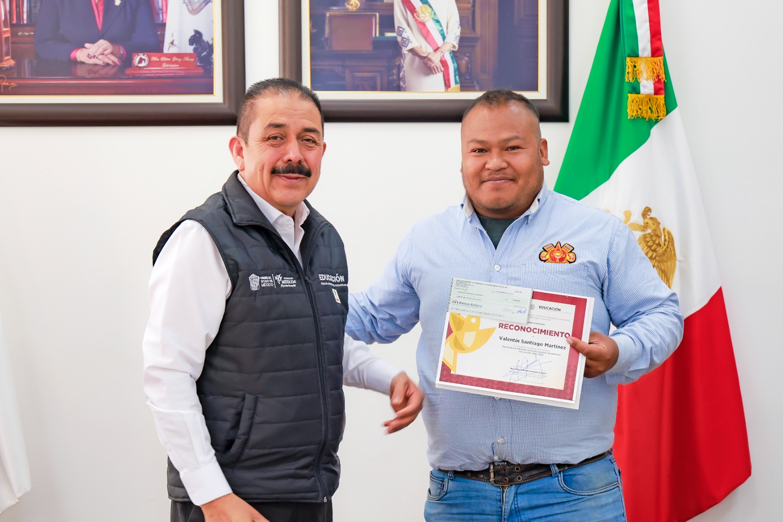 Entre los beneficiarios se encuentra Valentín Santiago Martínez, quien continuará su preparación en la Pontificia Universidad Católica de Chile, donde cursará una maestría en Desarrollo y Cooperación Internacional; así como Mateo Castañeda Caffaratti, pianista mexiquense de 13 años, alumno de la Escuela de Bellas Artes de Toluca y ganador del Programa de Estímulo a la Creación y Desarrollo Artístico (PECDA) 2025, que representará al Estado de México en la final del “6th Elevato Competition for International Youth”, el próximo 28 de marzo en Viena, Austria.