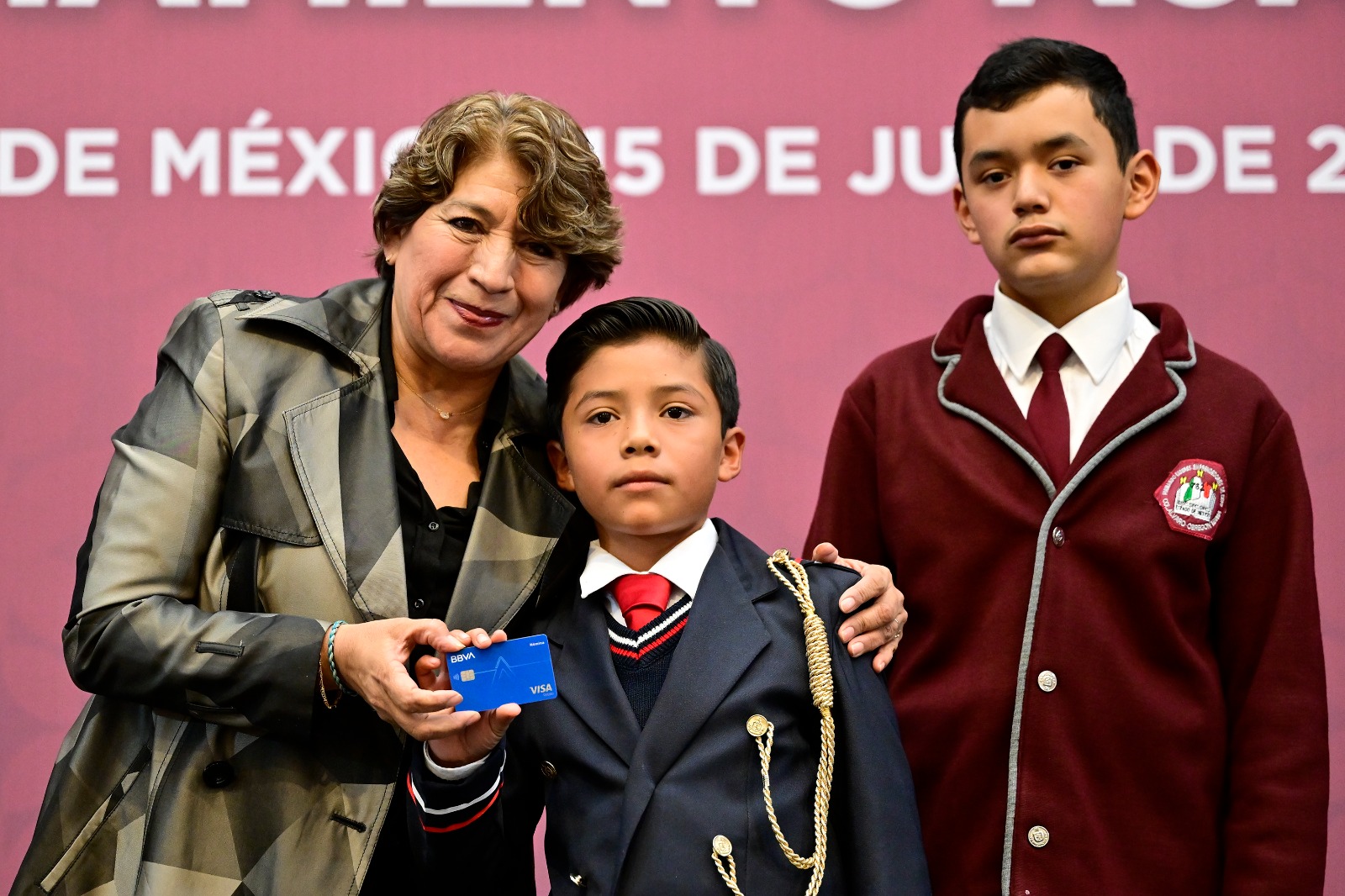 La Gobernadora Delfina Gómez Álvarez lanzó el programa de Becas para el Bienestar por Aprovechamiento Académico, con la entrega de 65 mil 289 apoyos económicos de 800 pesos mensuales para estudiantes de educación básica y superior en escuelas públicas de los subsistemas estatal y federal.