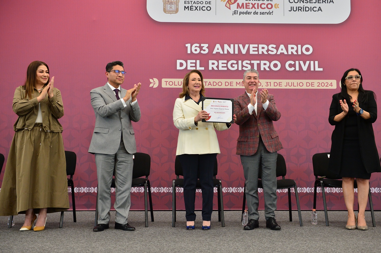 La vida jurídica de todas las personas comienza en el Registro Civil, con el derecho a la identidad, un derecho universal, único, irrenunciable e intransferible, bajo esa premisa se conmemoró el 163 aniversario del Registro Civil del Estado de México, al tiempo que se anunció una mejora en los ingresos de las personas servidoras públicas que laboran en este.