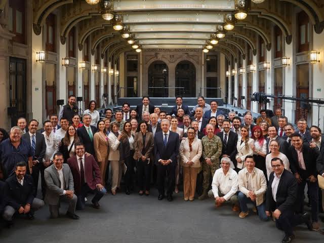 En la reunión participaron las secretarias de Gobernación, Luisa María Alcalde; del Bienestar, Ariadna Montiel; el del Trabajo, Marat Bolaños; y el subsecretario de Gobernación, Alejandro Encinas.
