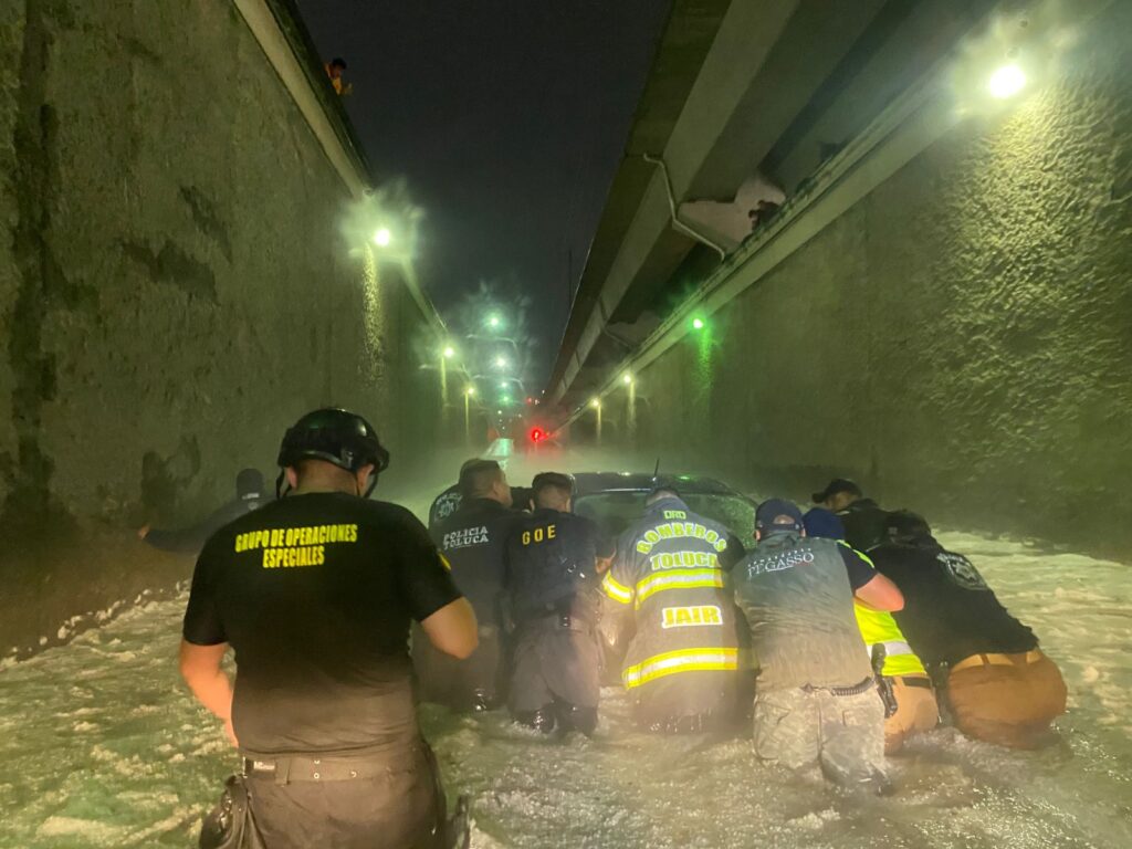 Uno de los momentos más críticos ocurrió en el bajo puente de Las Torres y Jesús Carranza, donde al menos cuatro vehículos quedaron atrapados por la acumulación de agua. Ocho personas tuvieron que ser rescatadas por elementos de la Policía Municipal, quienes también auxiliaron a ciudadanos que no podían continuar su camino y los trasladaron en sus unidades.