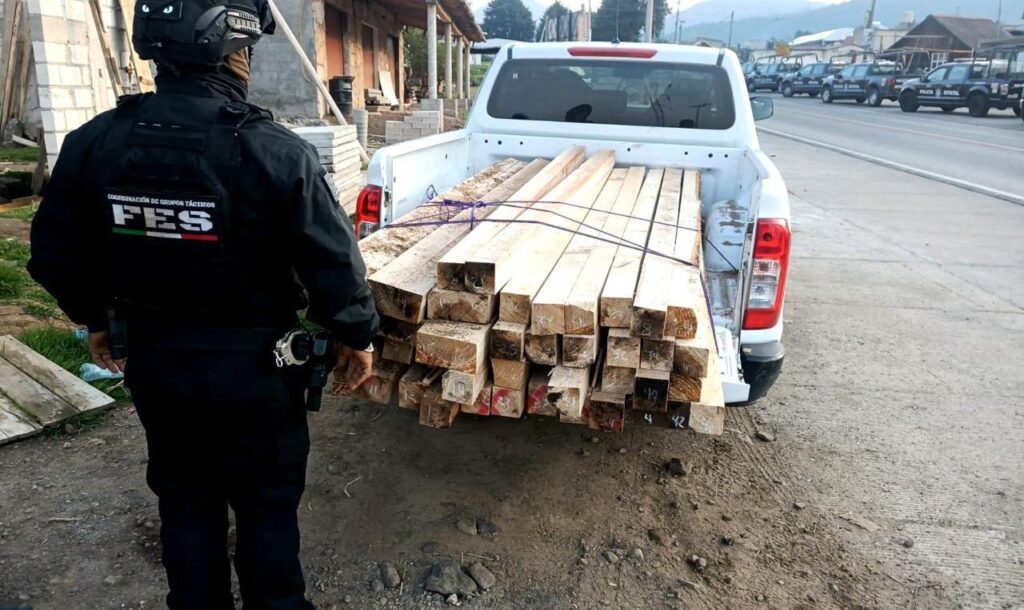 En acción coordinada, las fuerzas de seguridad federal y estatal aseguraron dos inmuebles en Ocuilan, probablemente utilizados para el almacenamiento y procesamiento de madera de procedencia ilícita y vinculados a la tala clandestina.