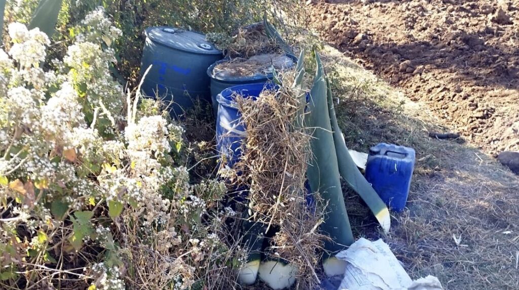El automotor se encontraba en aparente estado de abandono, por lo que mediante una inspección hallaron 15 contenedores y cinco más escondidos entre la maleza, cada uno de 200 litros, con una sustancia blanca, similar a la droga sintética conocida como cristal.