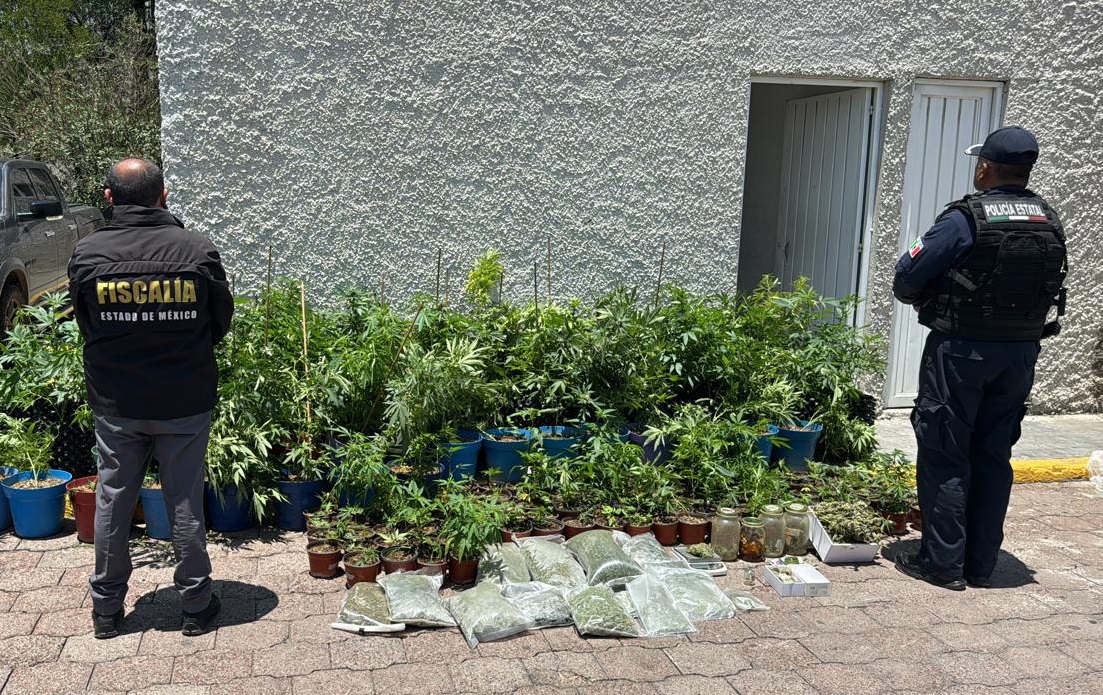 La Fiscalía General de Justicia del Estado de México (FGJEM), en conjunto con la Secretaría de Seguridad estatal (SSEM) detuvieron a un individuo y aseguraron bolsas con narcóticos y más de 200 macetas con plantas de marihuana, mediante técnica de investigación de cateo en un inmueble de la colonia San Francisco Magu, en este municipio.