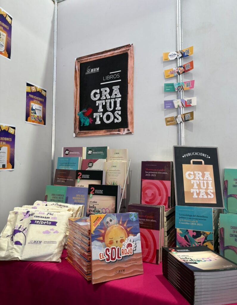 Quienes asistan a estos espacios culturales podrán conocer y adquirir sin costo las diversas obras editadas por el (CFDE) del IEEM, entre las que destacan las series Política Electoral Incluyente, Breviarios de Cultura Política Democrática, Investigaciones Jurídicas y Político-Electorales, así como la Gaceta Electoral del IEEM y la Revista Apuntes Electorales.