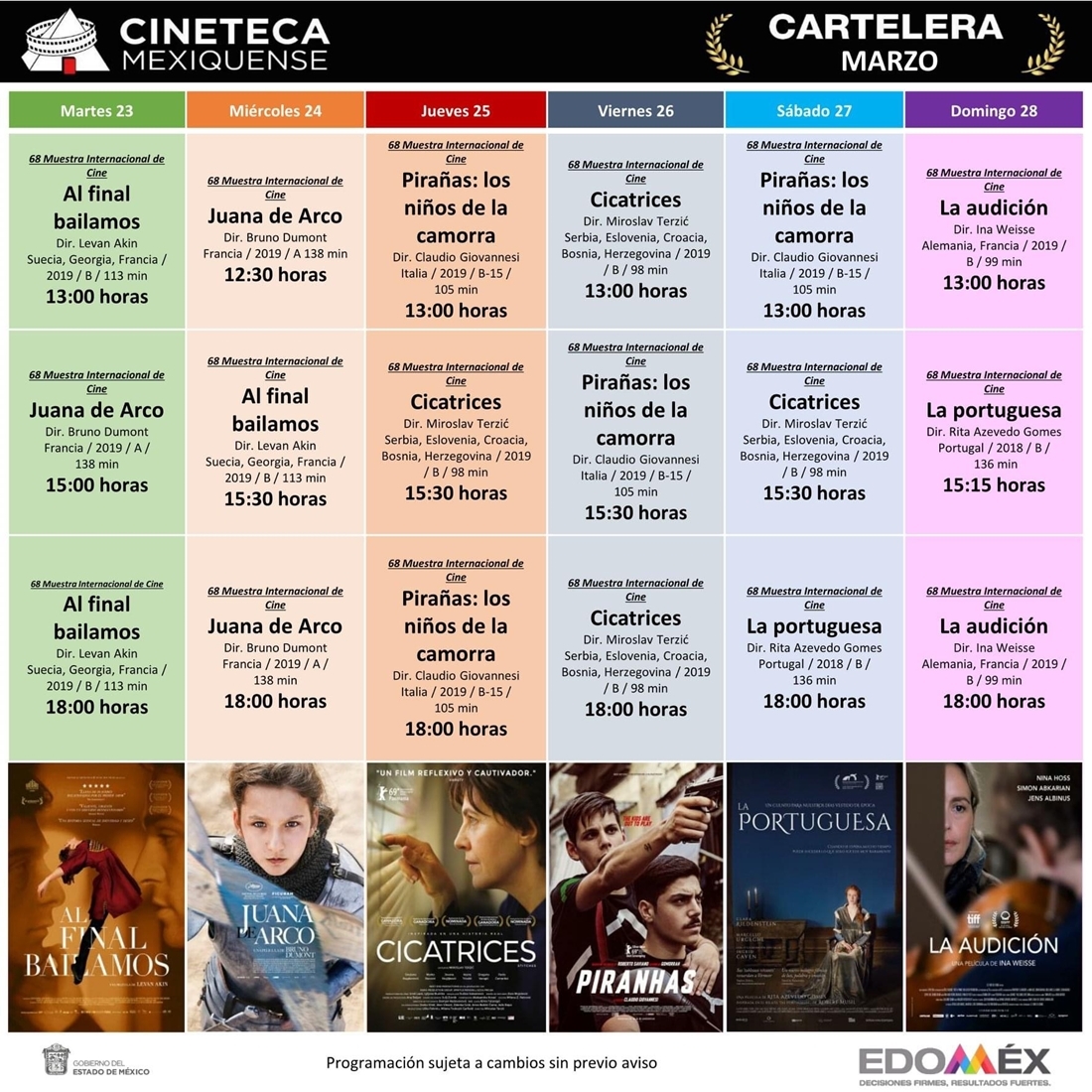 Para conocer la programación y horarios de la 68 Muestra Internacional de Cine, se pueden seguir las redes sociales por Facebook, Twitter e Instagram como Cineteca Mexiquense y en el sitio cineteca.edomex.gob.mx.