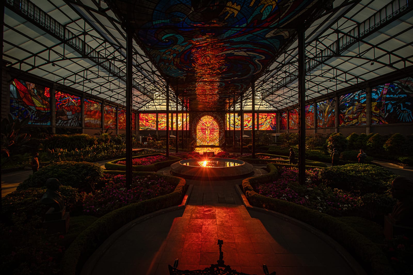 Este sitio se distingue por la obra del maestro mexiquense Leopoldo Flores Valdés, considerado el vitral no religioso más grande del mundo.
