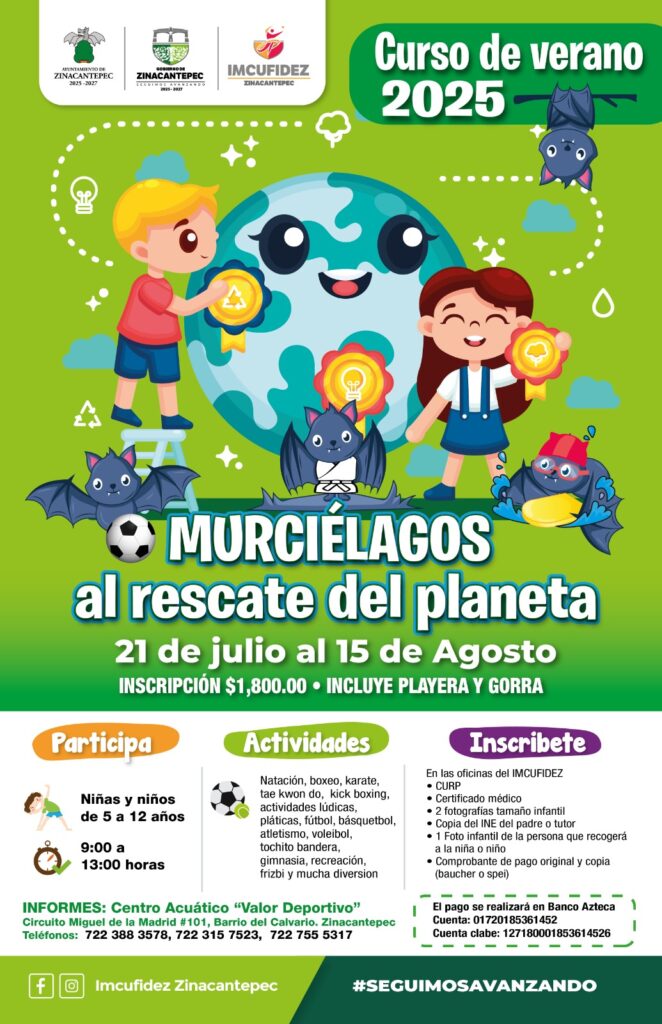 Dirigido a niñas y niños de entre 5 y 12 años, el programa se desarrollará bajo el lema “Murciélagos al rescate del planeta” y contempla actividades deportivas, recreativas y culturales. Entre las que se incluyen fútbol, basquetbol, voleibol, atletismo, lucha, dinámicas acuáticas, así como ejercicios enfocados en el cuidado ambiental y las tradiciones.