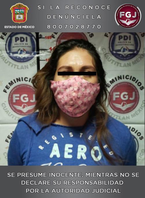 Esta mujer fue aprehendida en el municipio de Teoloyucan y posteriormente ingresada a un Penal estatal, sin embargo se le debe considerar inocente hasta que sea dictada una sentencia condenatoria en su contra.