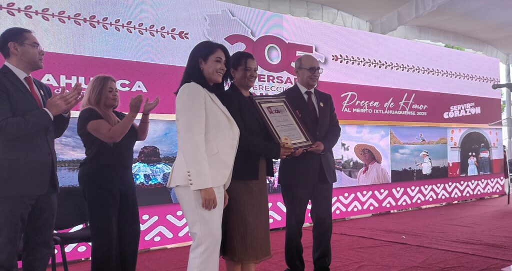 Minutos antes, las autoridades municipales y representantes del gobierno estatal reconocieron a los ixtlahuaquenses destacados en diferentes rubros con una presea.
