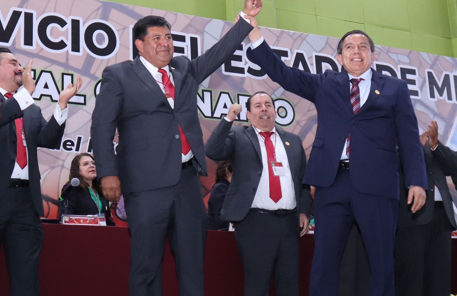«Porque sabemos que juntos en unidad podemos lograr el bienestar de las maestras y los maestros», afirmó, acompañado por su Comité Ejecutivo Estatal.