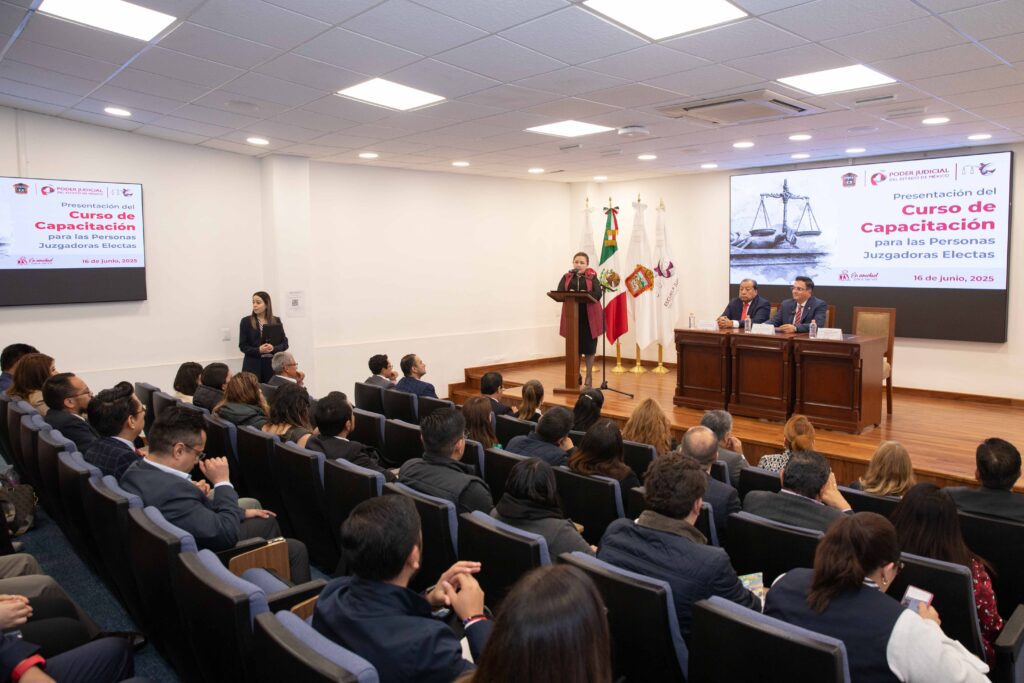 Asimismo, señaló que la capacitación es una herramienta clave para consolidar un nuevo modelo de justicia que responda al mandato ciudadano expresado en las urnas durante el proceso electoral extraordinario de 2025.