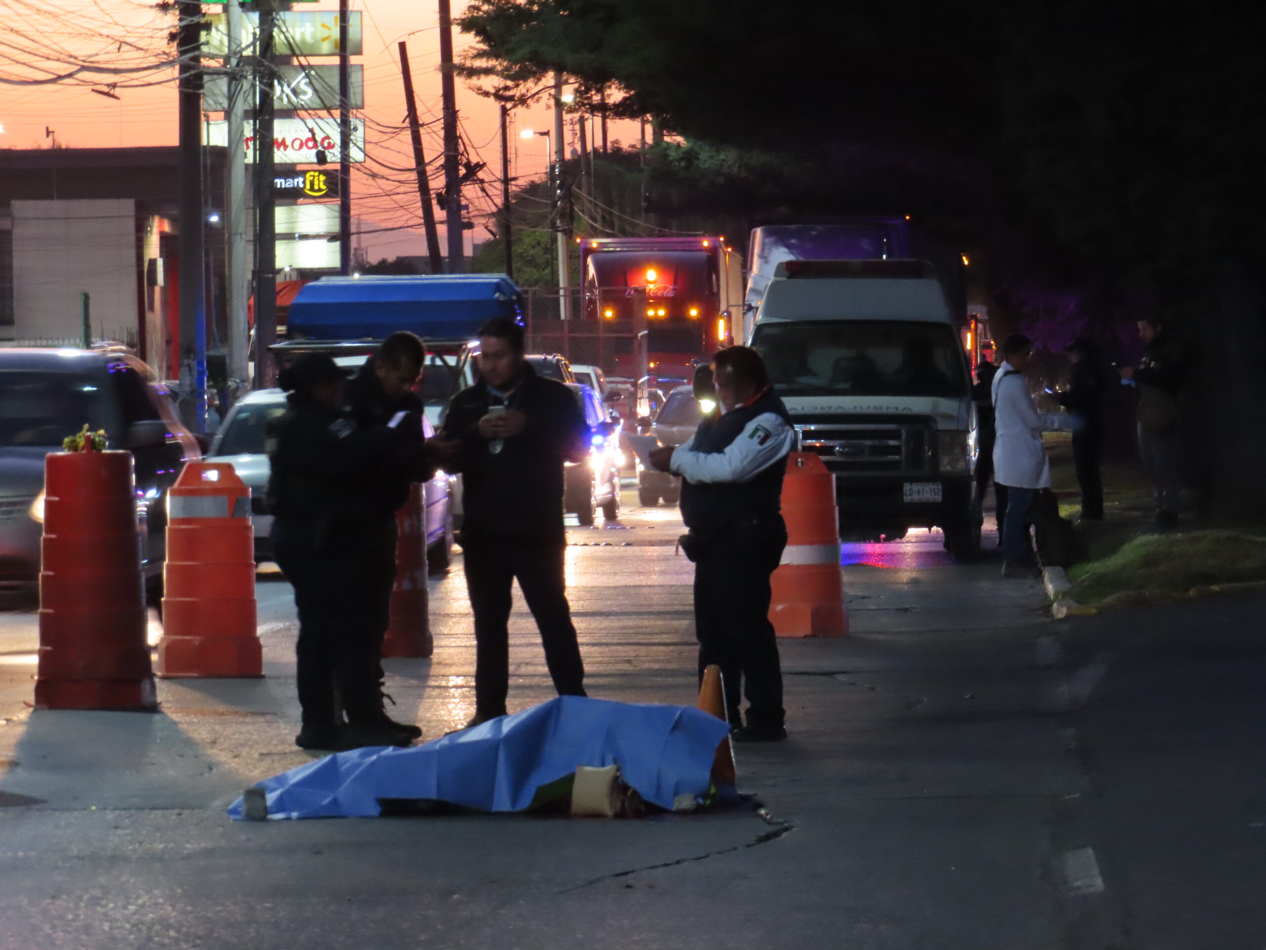 Los policías estatales y municipales tuvieron que colocar unos conos para advertir a los automovilistas del accidente, más tarde el equipo forense se encargó de realizar todas las diligencias y levantamiento de los restos.