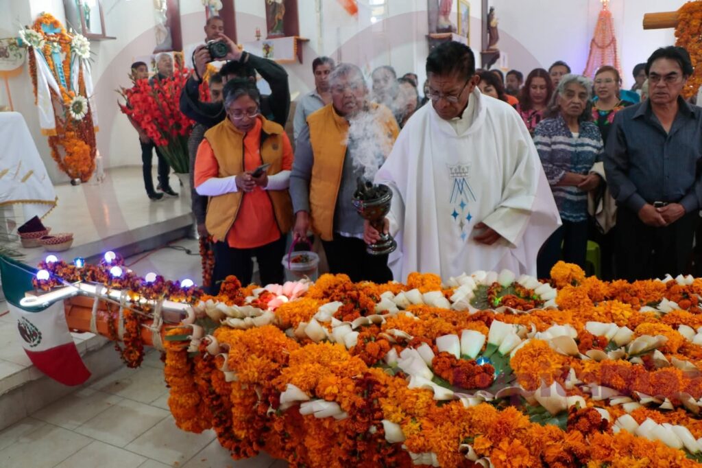 La presidenta municipal Lupita Díaz encabezó el traslado y la instalación de esta monumental pieza artesanal, acompañada por familias, autoridades locales, eclesiásticos y voluntarios que participaron activamente en su colocación.