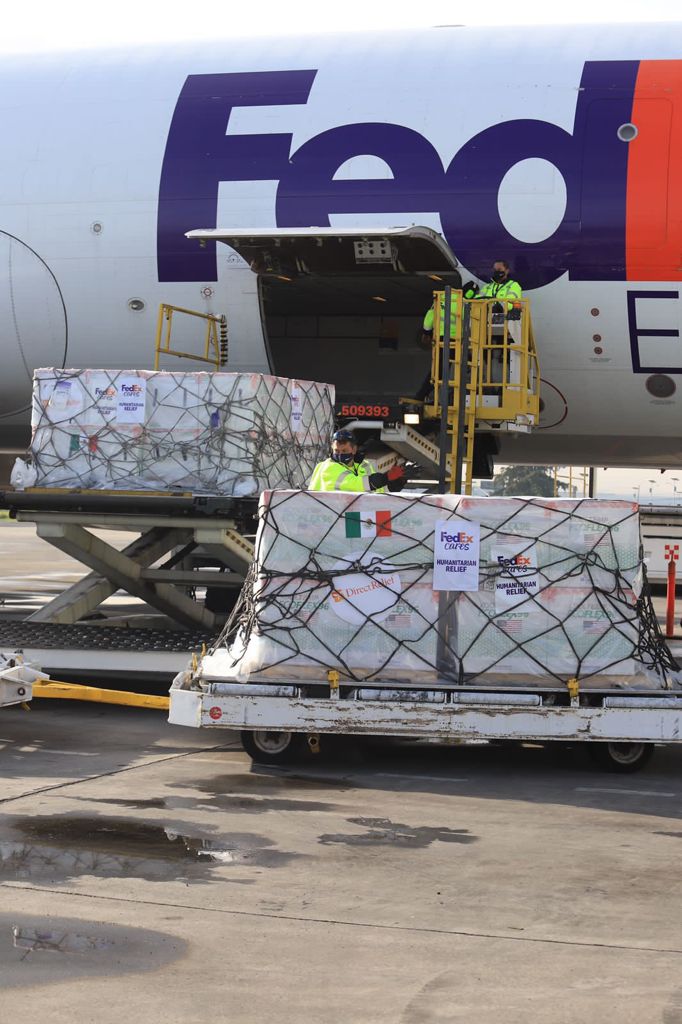 A las 8:34 am hora local, arribó el embarque con las vacunas provenientes de Memphis, Tennessee, que corresponden a la primera entrega de la donación por parte del Gobierno de los Estados Unidos a México, asi lo detalló el Administrador General de Aduanas, Horacio Duarte Olivares quien verificó que se cumpliera con los protocolos sanitarios y las revisiones aduanales.