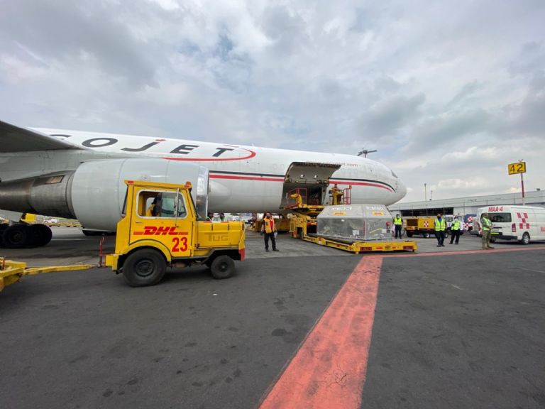 Durante la Conferencia Mañanera de Palacio Nacional, el presidente López Obrador realizó un enlace al Aeropuerto de la Ciudad de México, para la llegada de dos cargamentos de vacunas contra Covid-19.