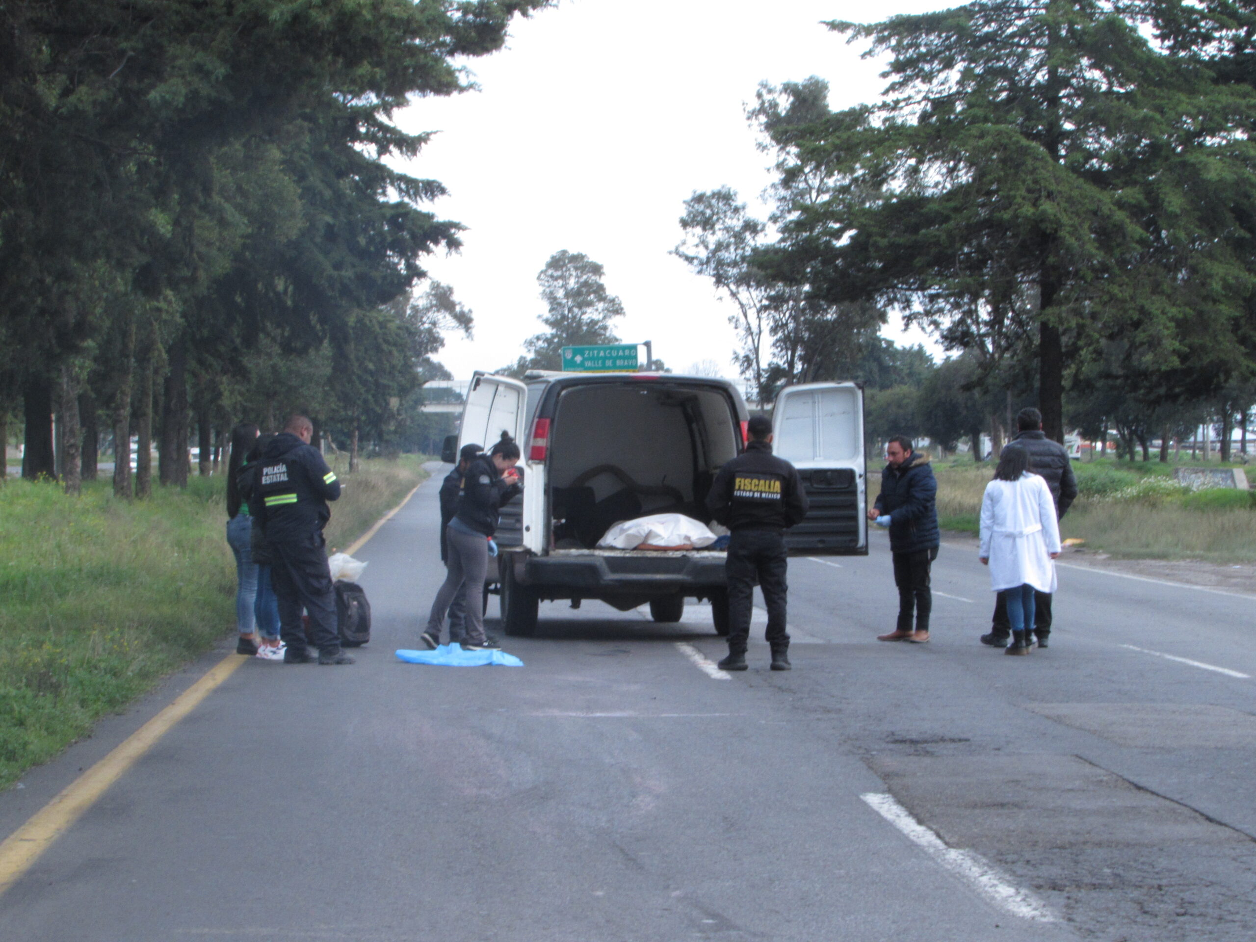 La policía estatal colocó una patrulla en los carriles centrales de la carretera Toluca Atlacomulco en dirección a la caseta de El Dorado para permitir las labores del equipo forense que realizó el levantamiento de los restos.