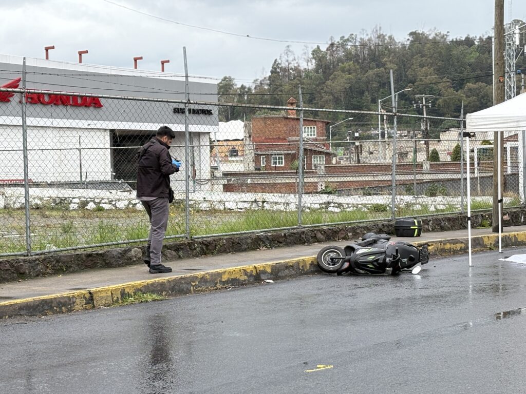 La víctima circulaba en un vehículo de dos ruedas de la marca Itálika color negro con verde con placas de circulación 41-BUC-5, que terminó a un costado del cuerpo, los policías resguardaron la escena del siniestro vial.