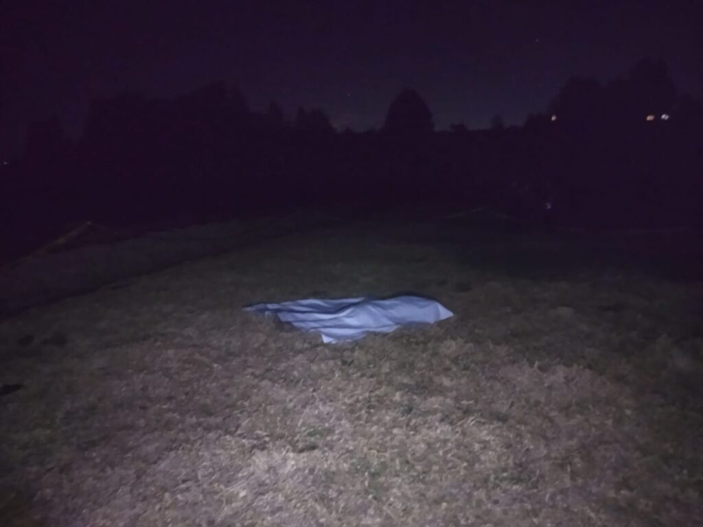 chamarra de tela polar a cuadros color azul y sudadera gris quedó sin vida en un terreno  tras recibir disparos de arma de fuego, en el lugar se localizaron más de 20 casquillos percutidos.