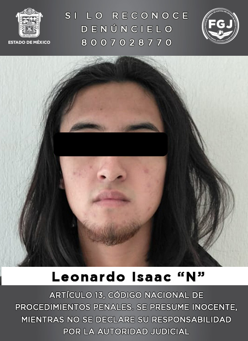 La Fiscalía General de Justicia del Estado de México (FGJEM) obtuvo y cumplimentó orden de aprehensión contra Leonardo Isaac “N”, de 20 años, quien se desempeñaba como prestador de servicio social en un plantel educativo ubicado en la colonia Potrero La Laguna, Primera Sección, municipio de Coacalco, donde habría agredido sexualmente a un niño de 6 años, por lo que es investigado por el delito de violación equiparada.