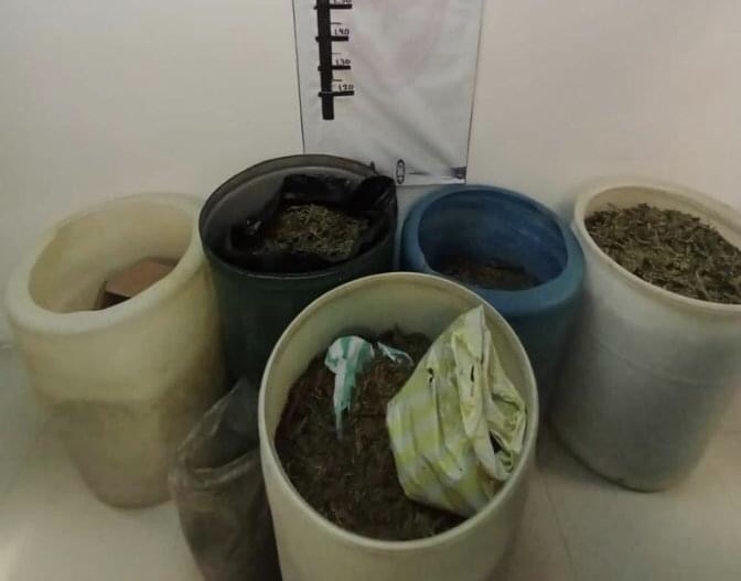 •         Cinco tambos con marihuana, con un peso total de 110 kilogramos