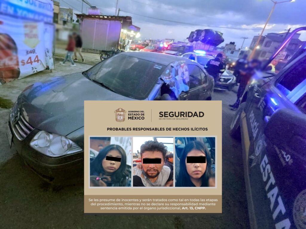 TRAS PERSECUCIÓN EN XONACATLÁN, POLICÍAS ESTATALES Y LOCALES DETIENEN A UN HOMBRE Y DOS MUJERES EN POSESIÓN DE UN VEHÍCULO ROBADO CON LUJO DE VIOLENCIA