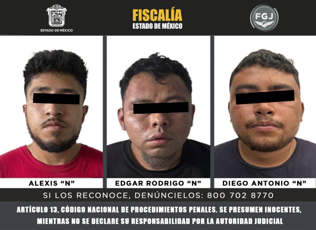 La Fiscalía General de Justicia del Estado de México (FGJEM) logró que un Juez dictara auto de vinculación a proceso en contra de tres individuos identificados como Alexis “N”, Edgar Rodrigo “N” y Diego Antonio “N”, por su presunta responsabilidad en el delito de homicidio en agravio de dos masculinos.