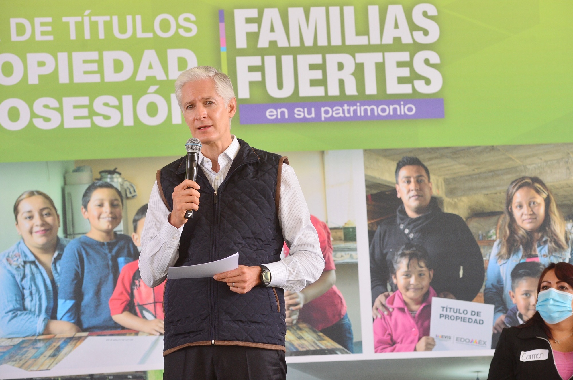 El mandatario mexiquense señaló que el programa Familias fuertes en su patrimonio, ayuda a regularizar la documentación de predios, viviendas y solares, para obtener certeza jurídica de las propiedades.