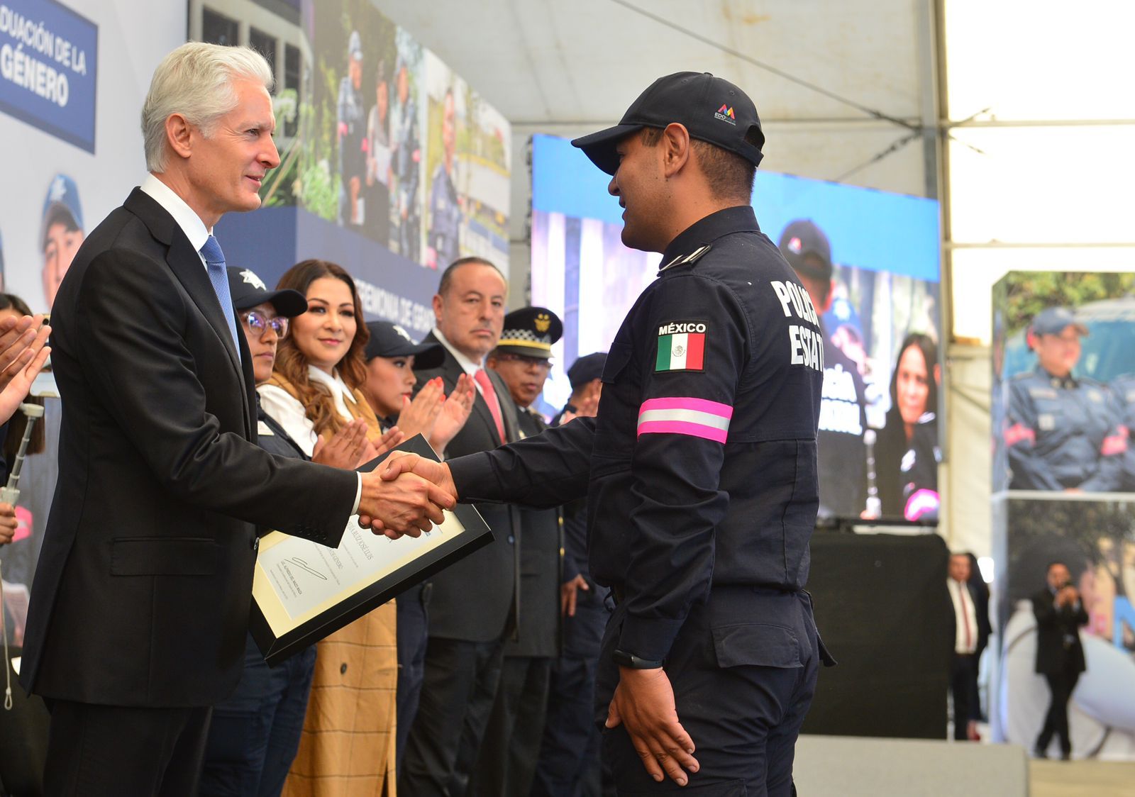 «Hoy formalmente egresan mil 900 elementos de la Policía de Género, mujeres y hombres comprometidos con su profesión y sensibles a las necesidades de la ciudadanía. Hoy, cada una y cada uno de ustedes se convierte profesionalmente en primeros respondientes con capacidad y herramientas suficientes para brindar atención profesional y especializada en los casos de violencia de género», externó el Gobernador del Edoméx.