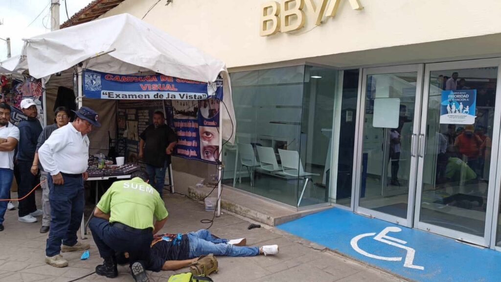 Los hechos se registraron al exterior de una sucursal bancaria de Bancomer ubicada en las calles López Tello y Nicolás Bravo, cerca de las 14:00 horas del lunes, de acuerdo con los primeros reportes de autoridades locales.