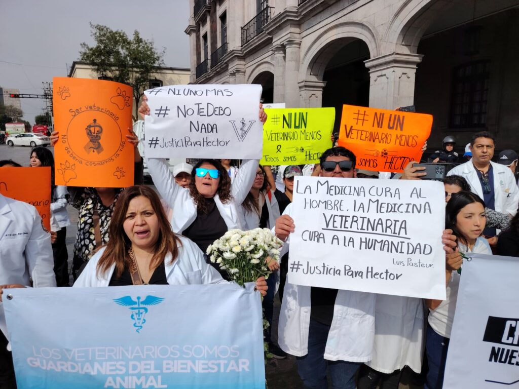 Un grupo de médicos veterinarios marchó por las calles de Toluca en el marco del Paro Nacional convocado por este sector, tras el presunto asesinato de Héctor Hernández Cañas en Tultepec.Los manifestantes, quienes se agruparon en el Parque Vicente Guerrero, recorrieron las avenidas José María Morelos y Pavón antes de llegar al Palacio de Gobierno del Estado de México.Vistiendo de blanco y con moños negros, los profesionales portaron pancartas con mensajes como: #NiUnVeterinarioMenos y #TodosSomosHéctor.“Nos enfrentamos constantemente a la violencia física, ya que muchos tutores no entienden que los animales son seres vivos. A veces no podemos salvarlos y una gran parte de la responsabilidad recae en los cuidados que se les den en casa y en seguir nuestras indicaciones como médicos”, comentó Nahomi Hernández, médica veterinaria.La profesional resaltó que, además de estar expuestos, los veterinarios son vulnerables debido a la falta de legislación que los respalde. “Es común recibir difamaciones, acoso en redes sociales, y muchos colegas han sufrido golpes y amenazas. Esto ocurre a menudo, pero no contamos con una ley que nos proteja”, añadió.Cabe mencionar que el asesinato de Hernández Cañas ocurrió tras la muerte de una perra Yorkshire Terrier llamada Mía, quien presentó una obstrucción en el esófago a causa de un hueso de aproximadamente tres centímetros. El veterinario realizó una intervención quirúrgica, pero la perra falleció. A pesar de que él denunció amenazas por parte de los dueños, fue atacado con un arma blanca, lo que resultó en su muerte.Hasta el momento, la Fiscalía General de Justicia del Estado de México no ha ofrecido más detalles sobre el caso ni sobre la detención de los sospechosos.