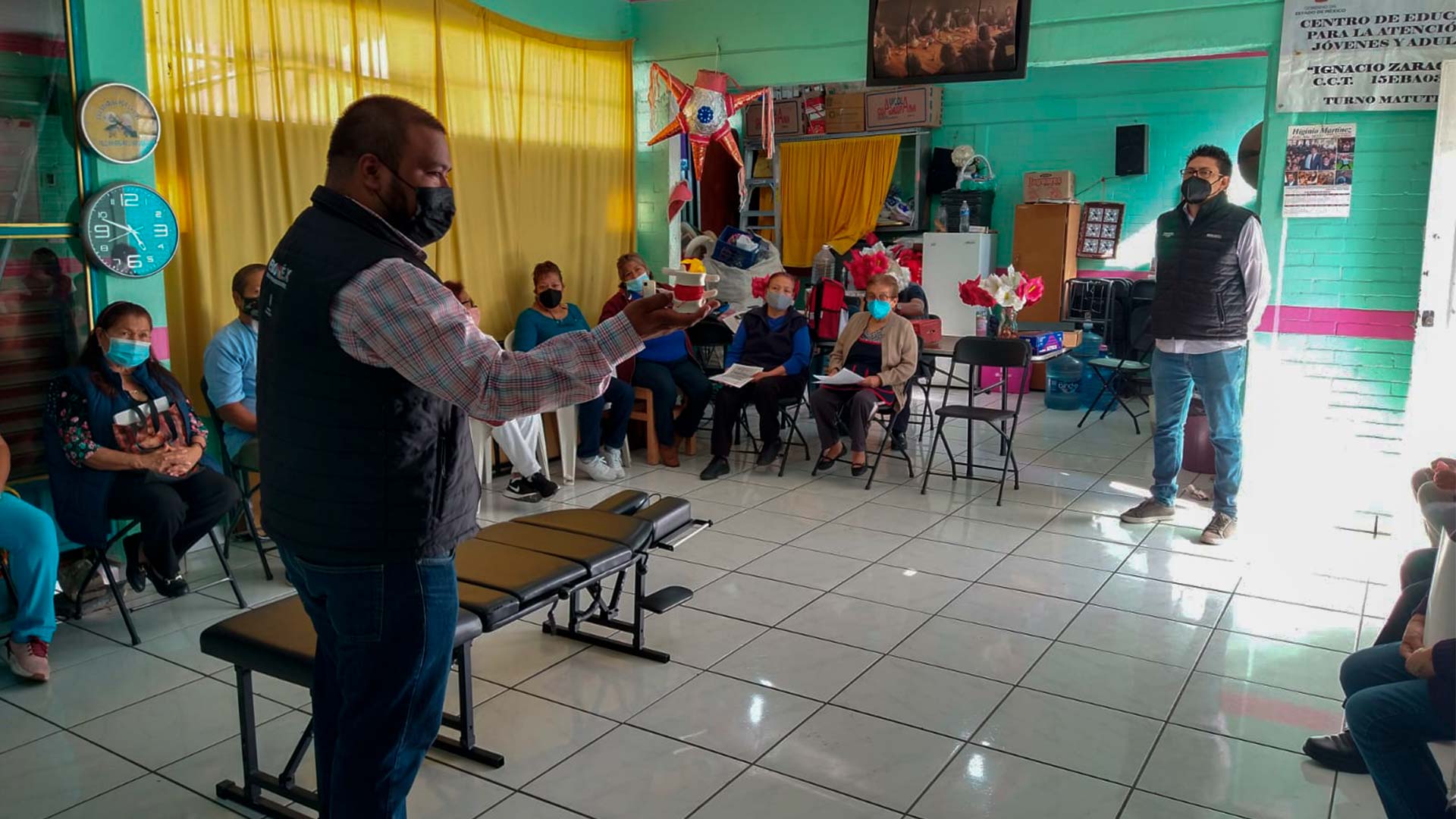 Para prevenir problemas en la zona lumbar de las personas mayores de 60 años, profesionales de la salud que integran la Brigada Multidisciplinaria perteneciente a la Secretaría de Desarrollo Social que dirige Alejandra Del Moral Vela, ofrecieron sesiones de terapia en las que se dio tratamiento para estos padecimientos y al mismo tiempo se les compartieron rutinas para fortalecer la movilidad en esa zona corporal.