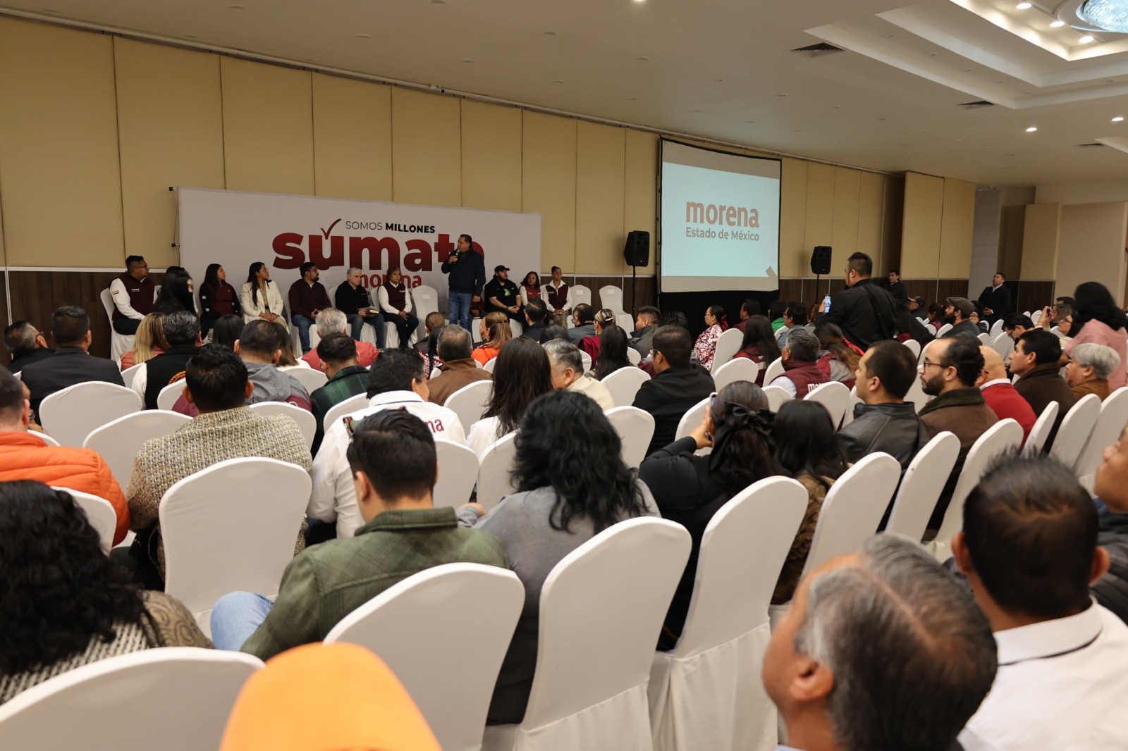 En el evento también informó que la jornada de afiliación de Morena avanza con éxito, reflejando el respaldo ciudadano hacia la presidenta de México, Claudia Sheinbaum, y la gobernadora del Estado de México, Delfina Gómez Álvarez.
