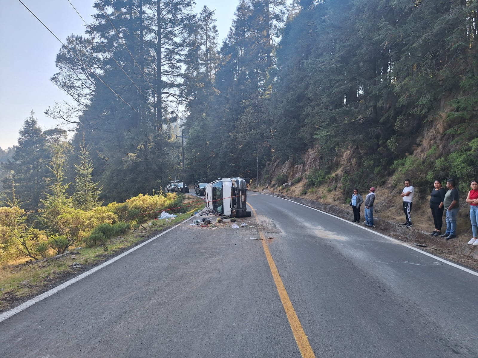 El accidente se registró sobre la carretera La Puerta Sultepec, durante el lunes, al momento que la unidad Ford F150 de color blanco terminó recostada de su lado derecho obstruyendo uno de los dos carriles.