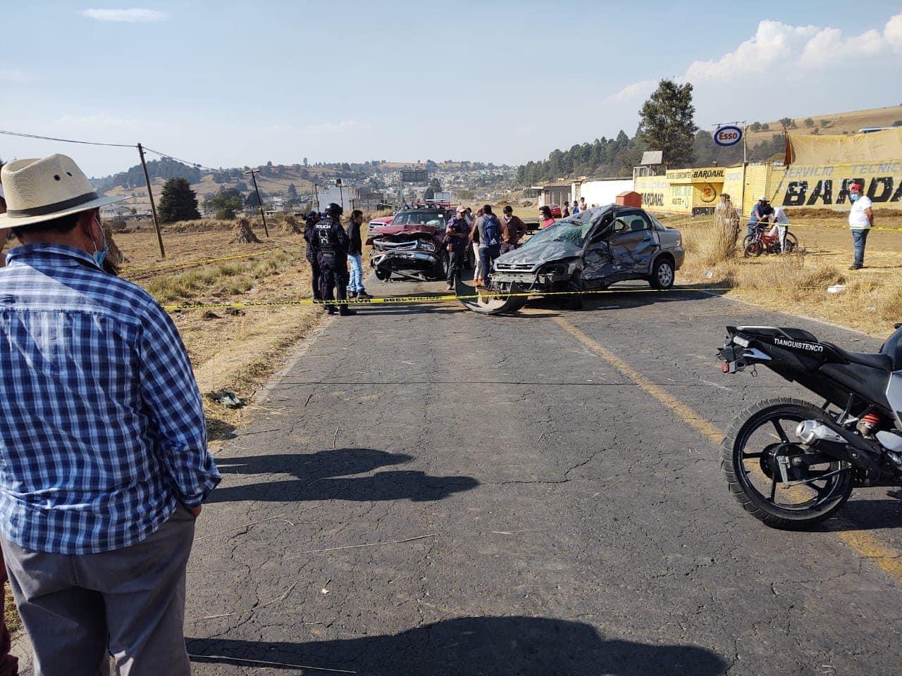 Luego de volcar e impactarse contra una camioneta, una pareja que viajaba a bordo de un vehículo falleció en la comunidad de San Nicolás Coatepec ubicada en el municipio de Santiago Tianguistenco.