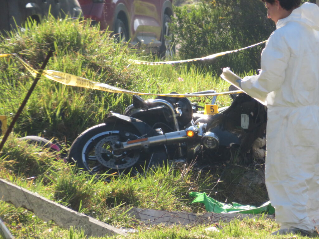 José Luis y Lucía fallecieron después de derrapar en la motocicleta que viajaban, hasta quedar en un predio a pie de la carretera en San Miguel Almoloyan en Almoloya de Juárez, familiares llegaron para identificarlos.